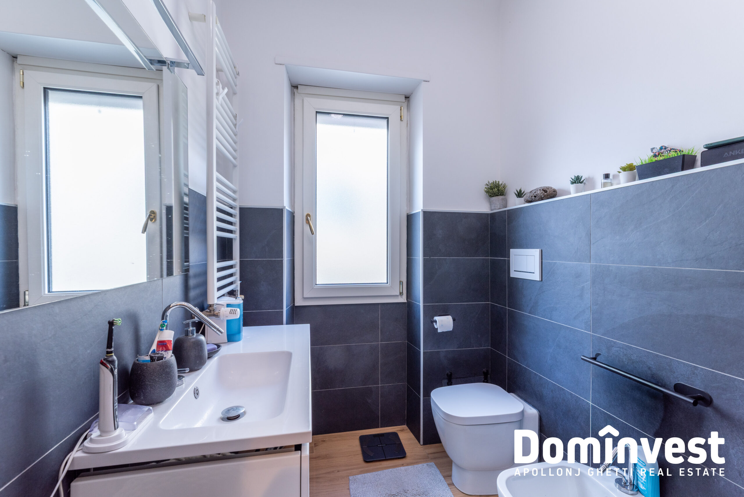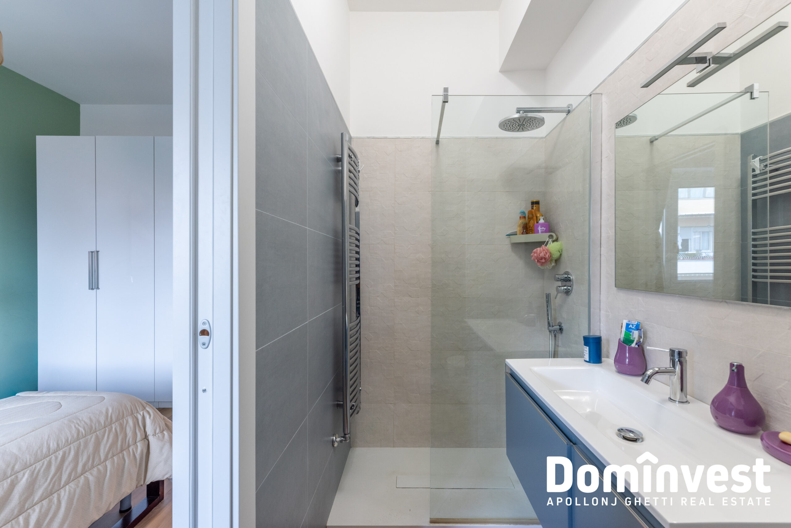 L’appartamento è stato finemente ristrutturato e si compone di: soggiorno con cucina a vista, due ampie camere matrimoniali delle quali una con bagno en suite, ampio bagno con finestra, studiolo, lavanderia, terrazzo perimetrale.