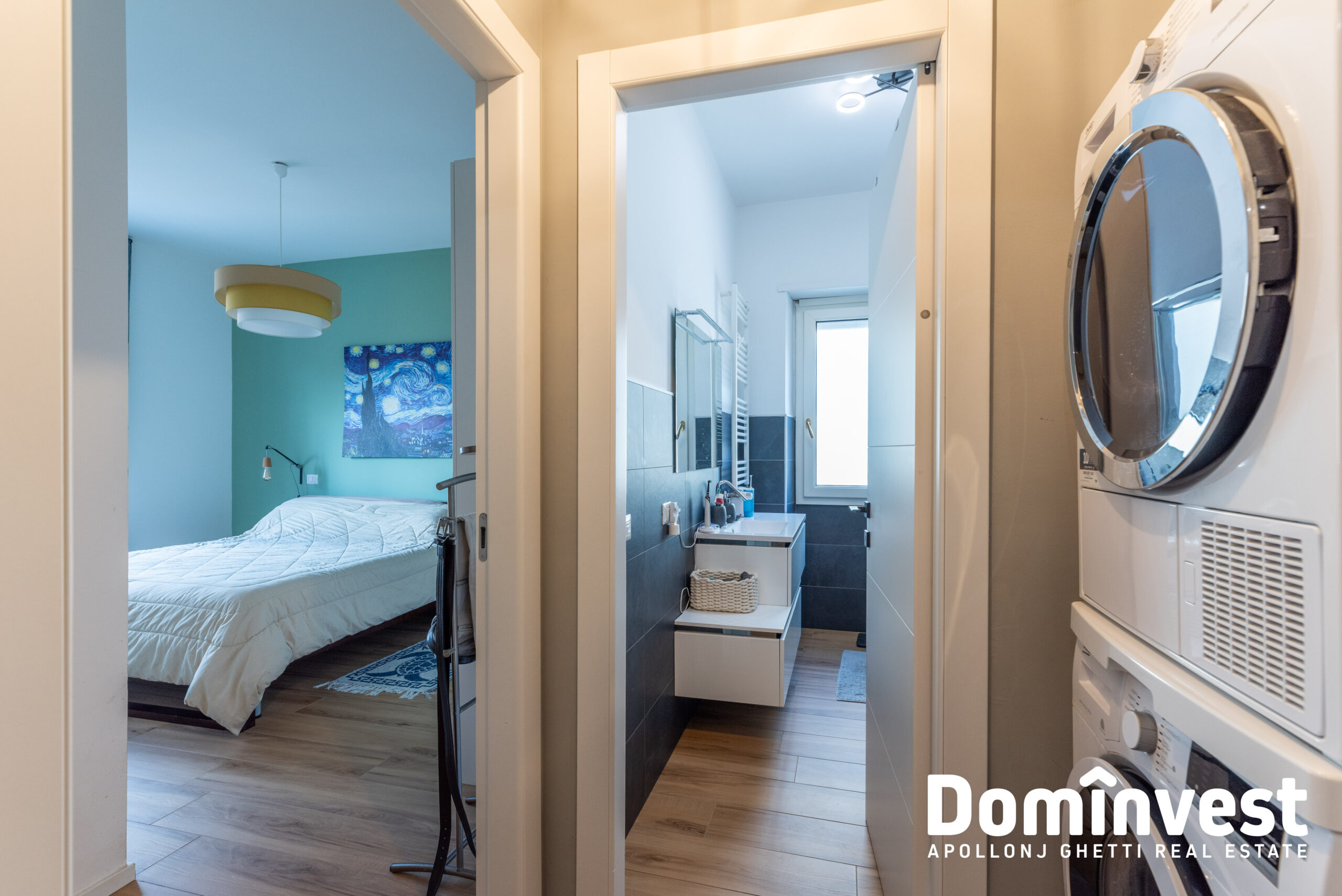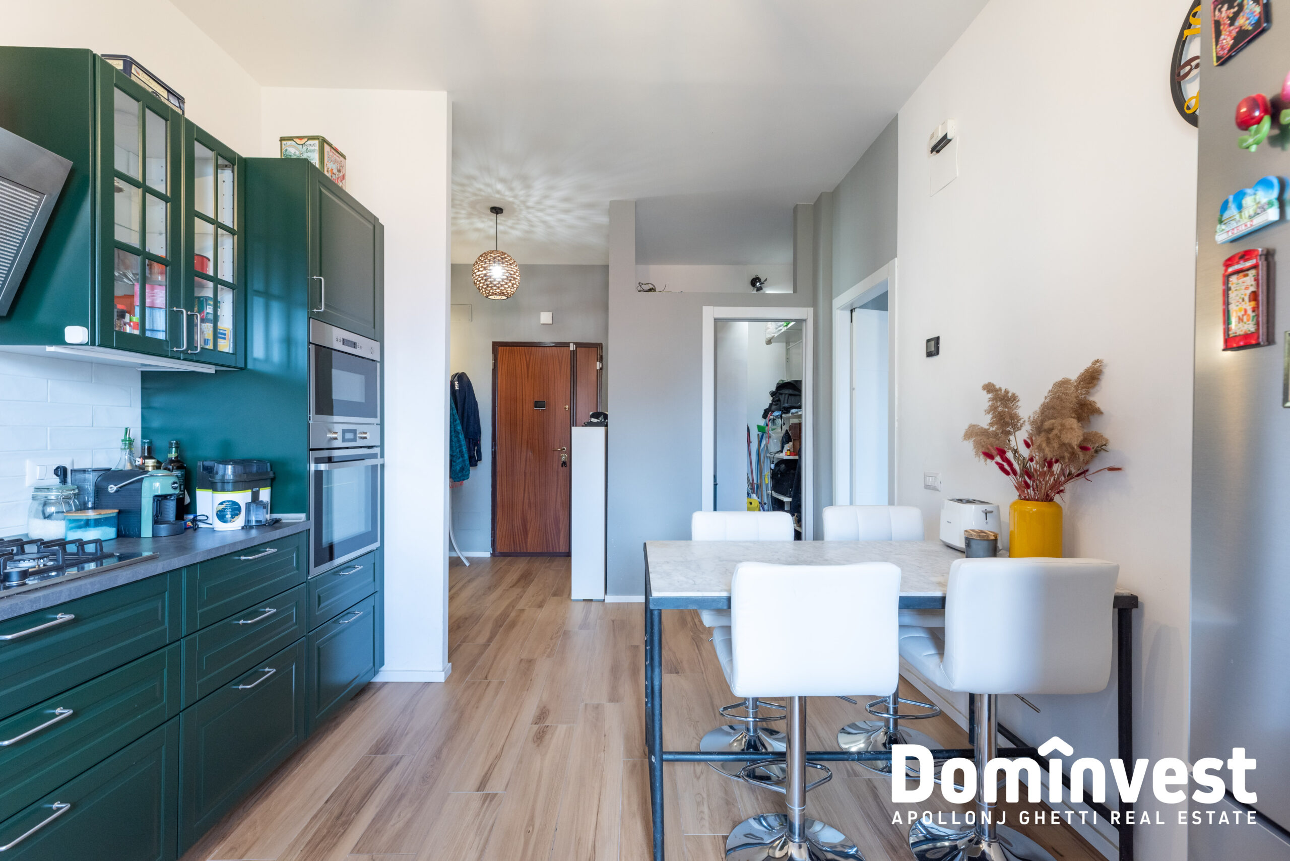 L’appartamento gode di un’ottima esposizione solare a Sud Ovest e di un affaccio molto aperto e panoramico.
