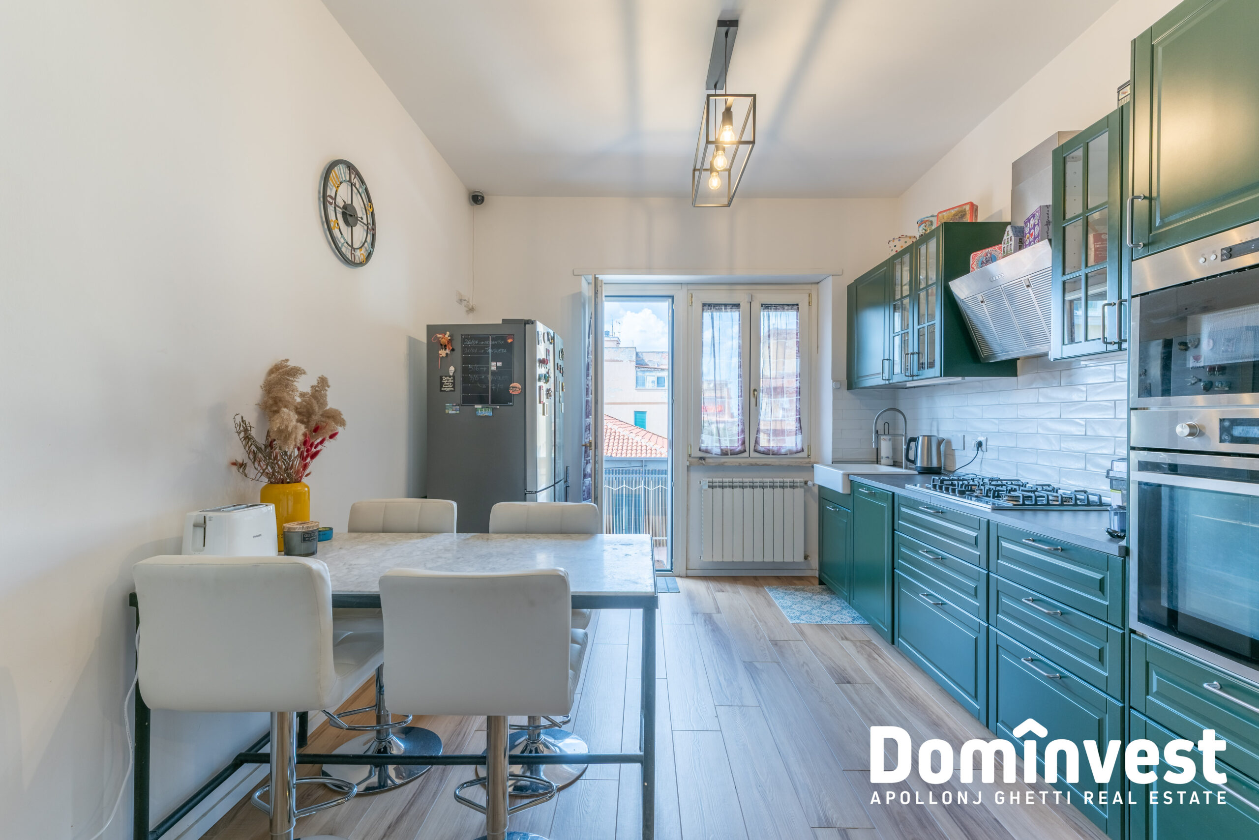 Dotato di pavimenti in parquet di grès, aria condizionata, riscaldamento autonomo, infissi con doppi vetri, porta blindata e cucina completa.