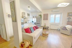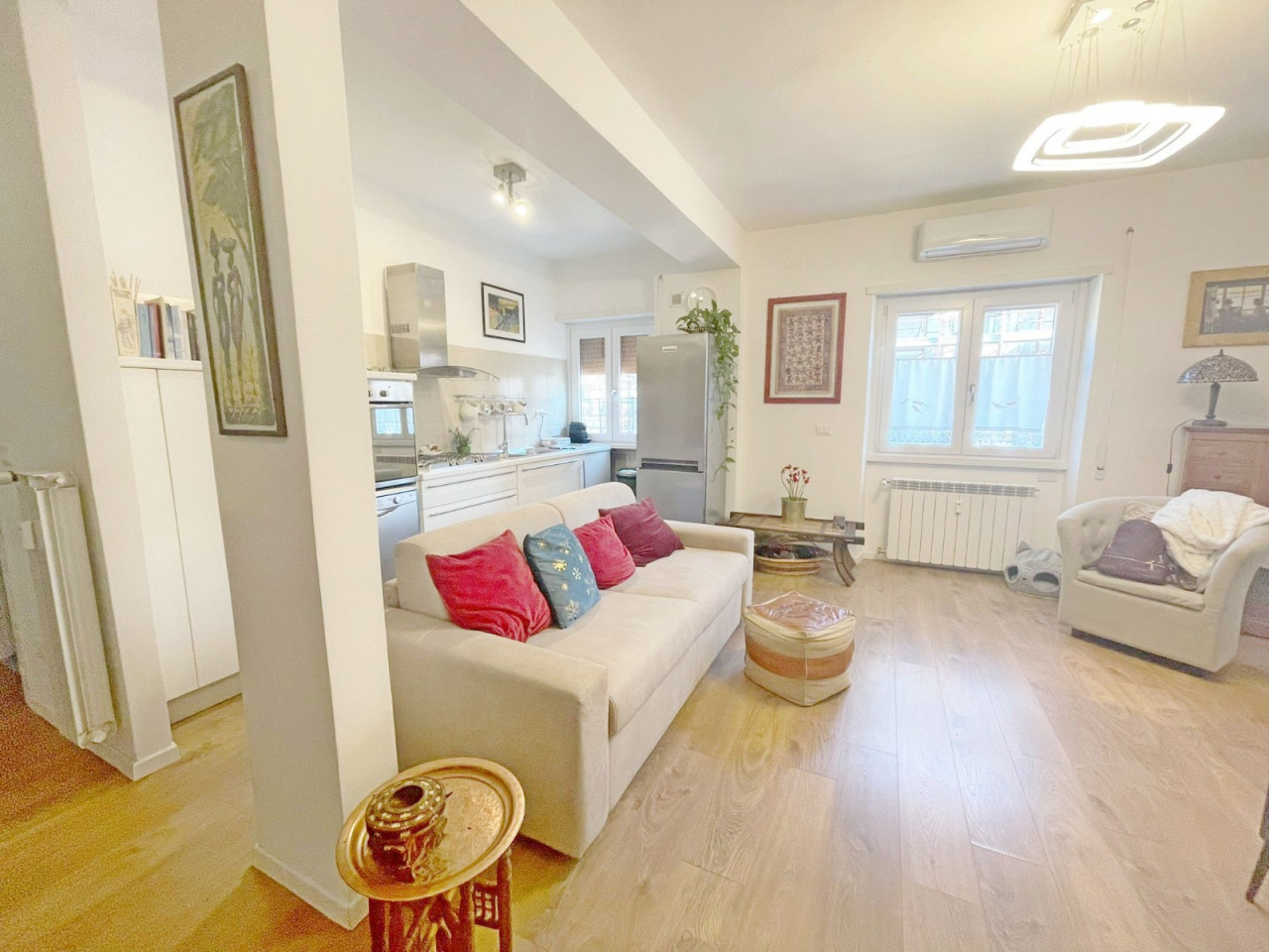 L’appartamento è dotato di pavimenti in parquet, infissi con doppio vetro, riscaldamento centralizzato con contabilizzatori e aria condizionata.