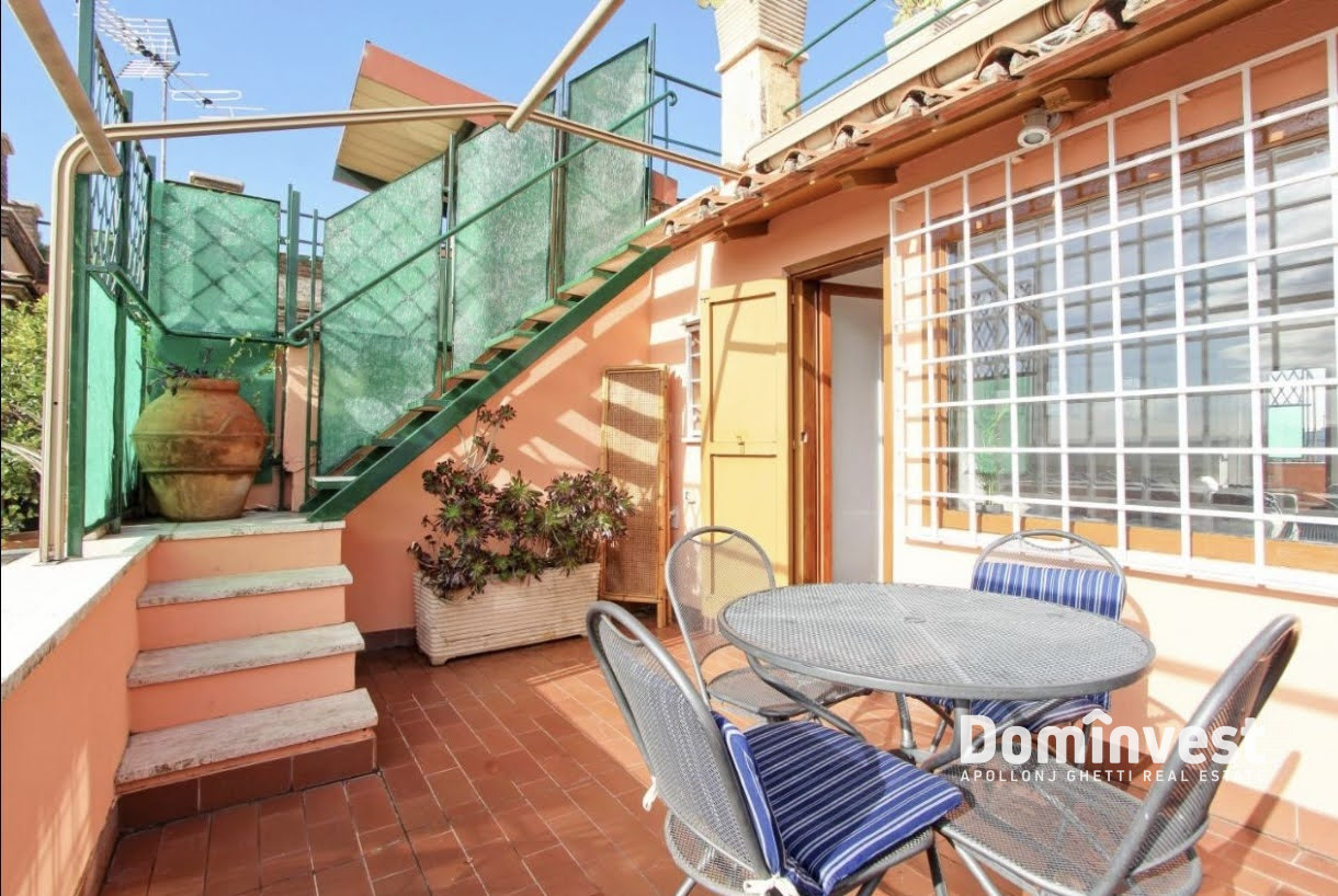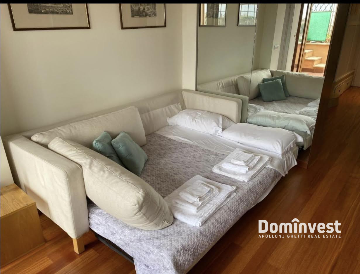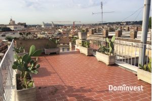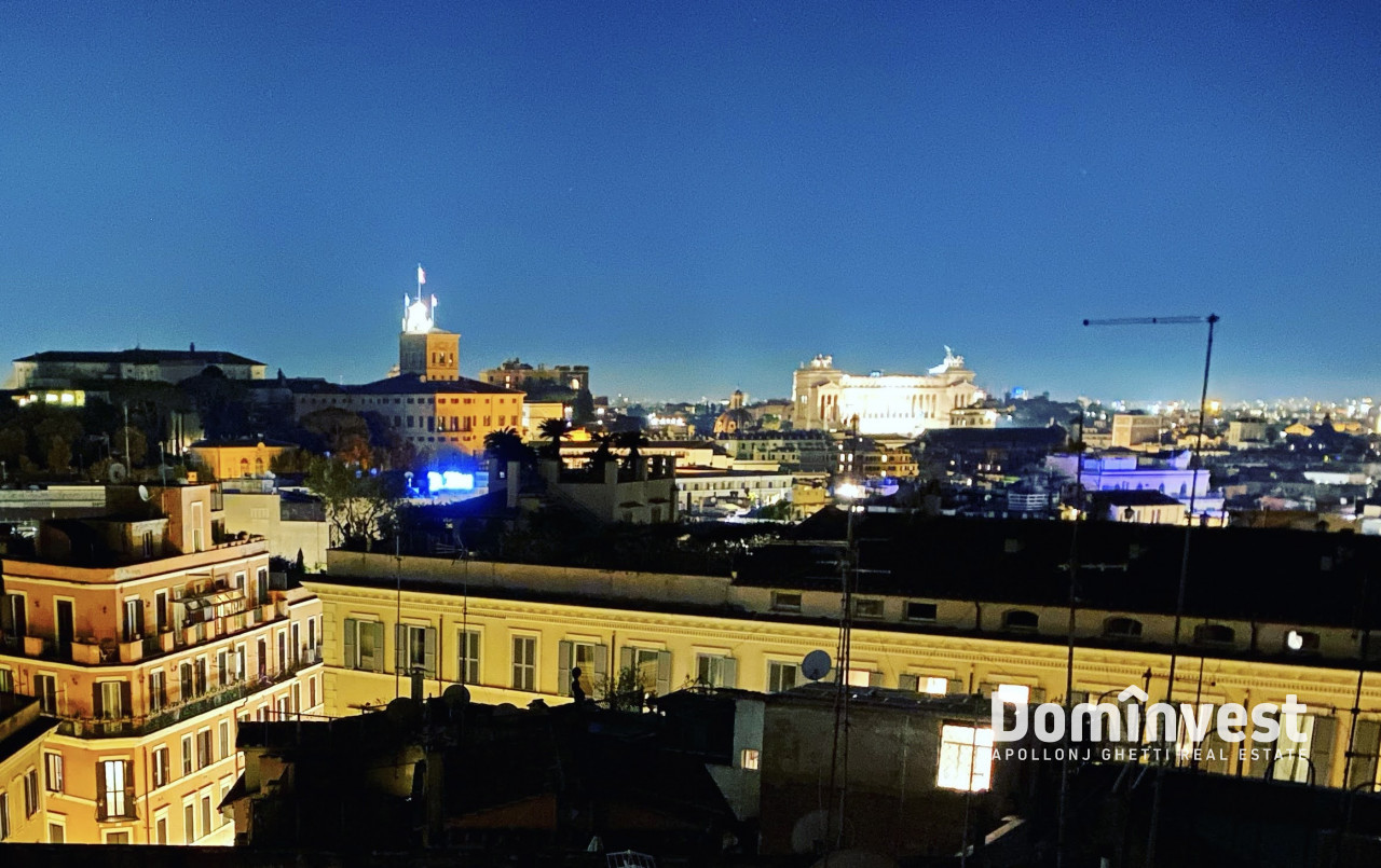 L’Agenzia immobiliare Dominvest propone in locazione un attico con eccezionale vista sul Centro Storico della capitale, con affacci sul Quirinale, sul Vittoriano e sulla Cupola di San Pietro. L’immobile si trova al sesto piano, servito da ascensore, di un elegante palazzo d’epoca a pochi passi da Piazza di Spagna, Via Veneto e Fontana di Trevi. Internamente l’appartamento è composto da un unico, ampio ambiente con doppia esposizione, luminoso e silenzioso. Dispone di un pratico angolo cottura, un bagno di generose dimensioni e una zona giorno con tre posti letto, dalla quale si accede al primo dei due terrazzi. Il secondo terrazzo, situato al piano superiore, offre una suggestiva vista panoramica sulle bellezze del centro storico. L’appartamento è in ottimo stato, completamente arredato e dotato di ogni comfort, tra cui aria condizionata e riscaldamento autonomo. La posizione è particolarmente comoda grazie alla vicinanza alla fermata della metro Barberini e alla presenza di numerosi servizi, negozi e ristoranti nelle immediate vicinanze. No attività ricettive. *le presenti informazioni e planimetrie sono meramente indicative e non costituiscono elementi contrattuali.