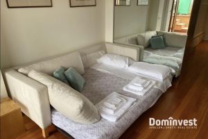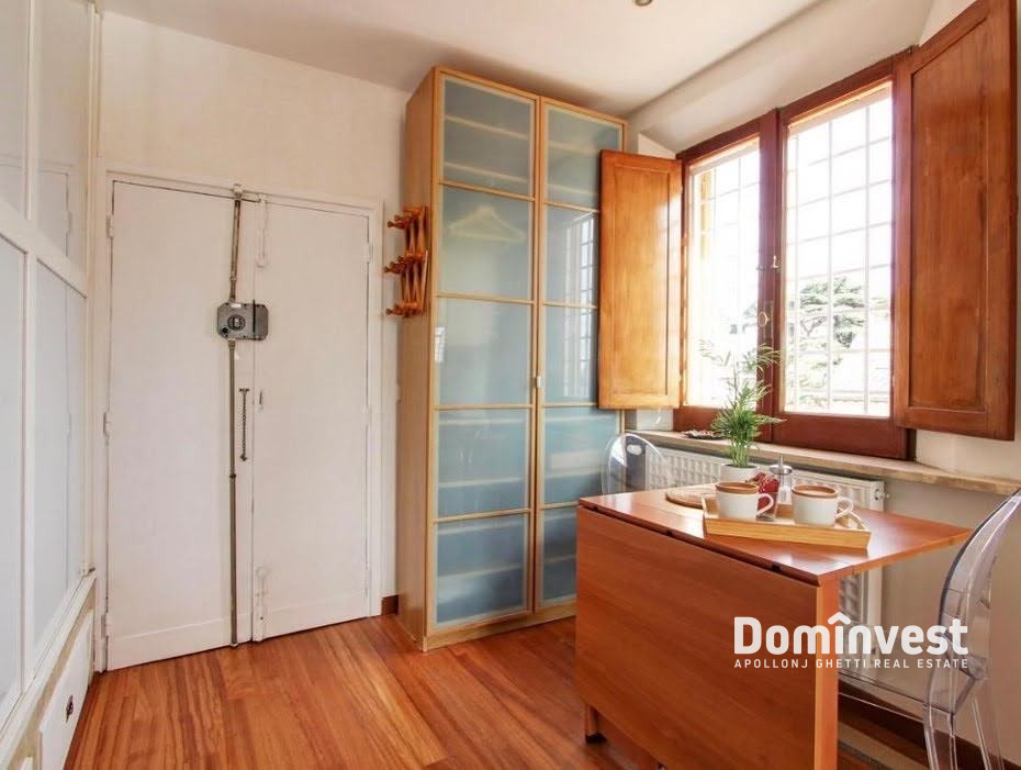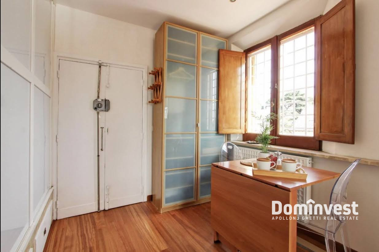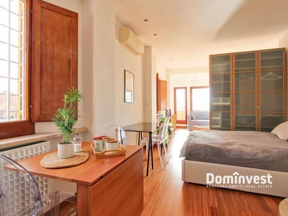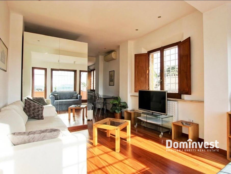 L’Agenzia immobiliare Dominvest propone in locazione un attico con eccezionale vista sul Centro Storico della capitale, con affacci sul Quirinale, sul Vittoriano e sulla Cupola di San Pietro. L’immobile si trova al sesto piano, servito da ascensore, di un elegante palazzo d’epoca a pochi passi da Piazza di Spagna, Via Veneto e Fontana di Trevi. Internamente l’appartamento è composto da un unico, ampio ambiente con doppia esposizione, luminoso e silenzioso. Dispone di un pratico angolo cottura, un bagno di generose dimensioni e una zona giorno con tre posti letto, dalla quale si accede al primo dei due terrazzi. Il secondo terrazzo, situato al piano superiore, offre una suggestiva vista panoramica sulle bellezze del centro storico. L’appartamento è in ottimo stato, completamente arredato e dotato di ogni comfort, tra cui aria condizionata e riscaldamento autonomo. La posizione è particolarmente comoda grazie alla vicinanza alla fermata della metro Barberini e alla presenza di numerosi servizi, negozi e ristoranti nelle immediate vicinanze. No attività ricettive. *le presenti informazioni e planimetrie sono meramente indicative e non costituiscono elementi contrattuali.