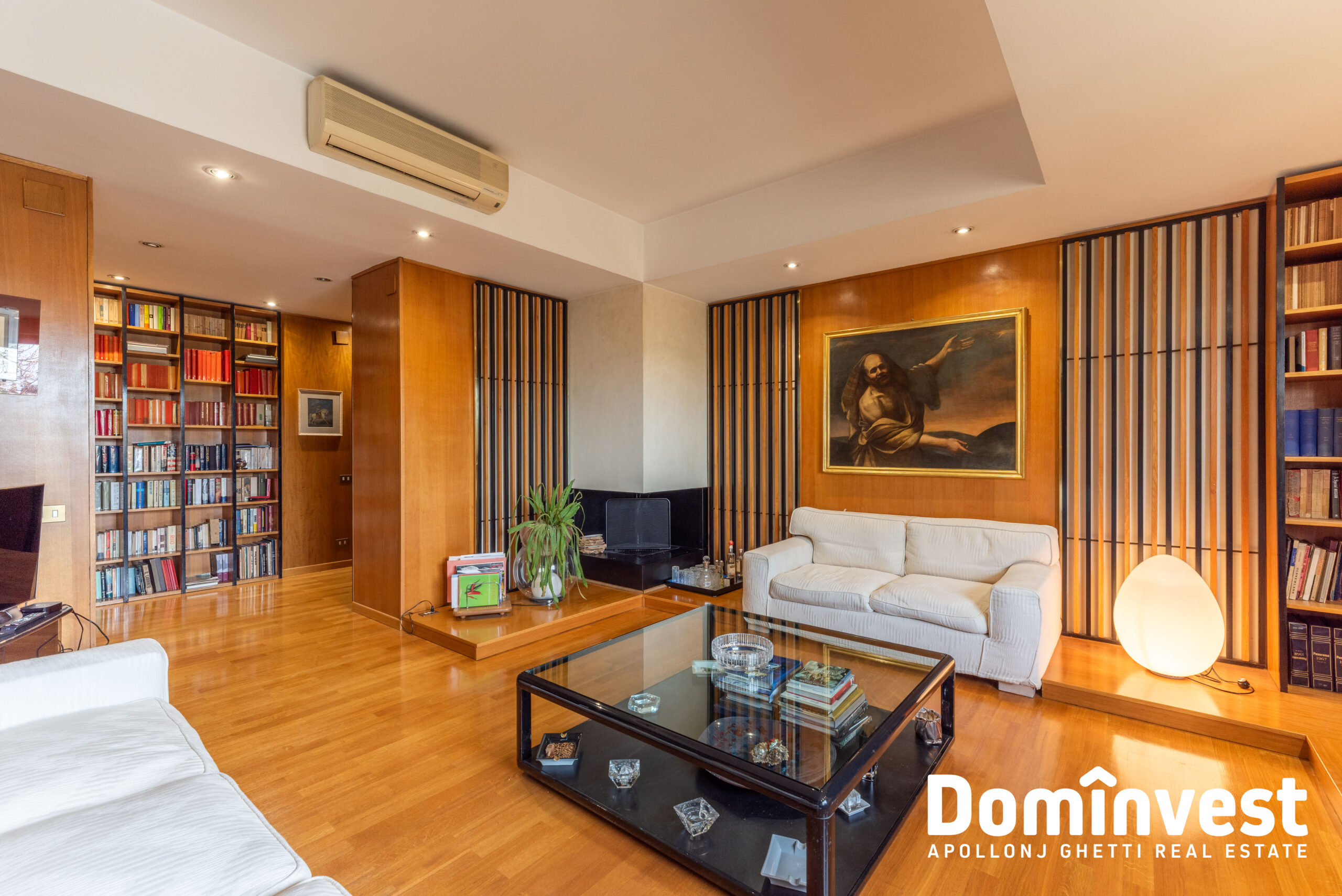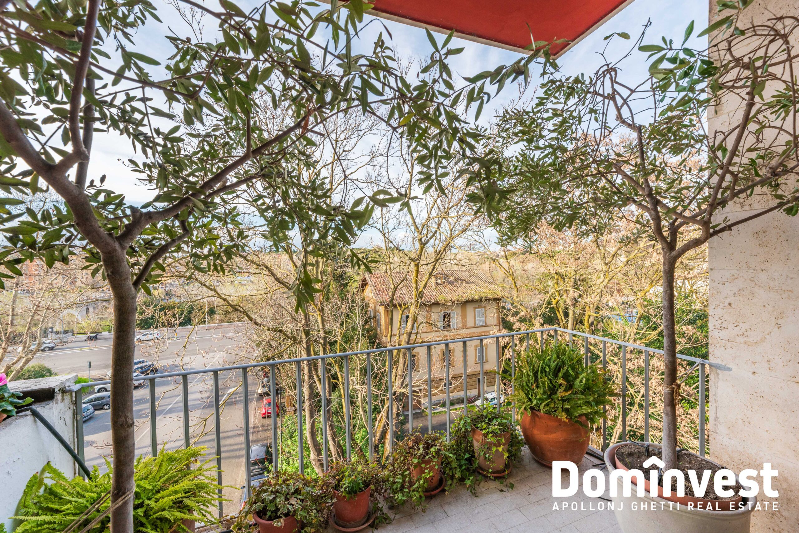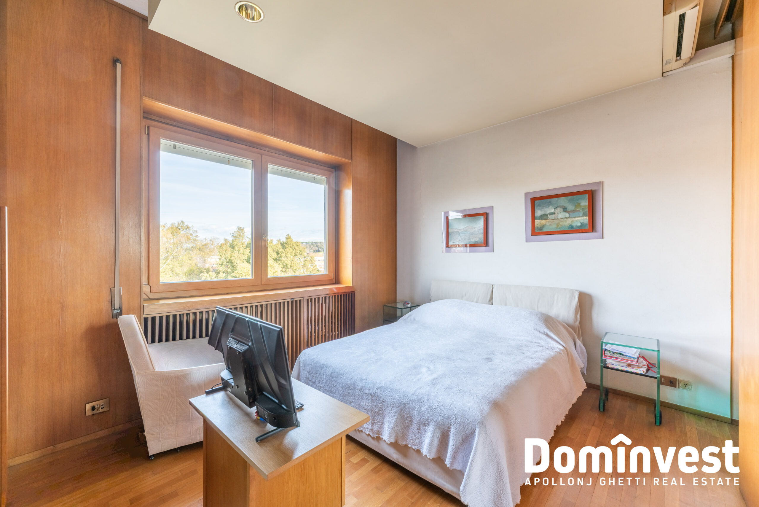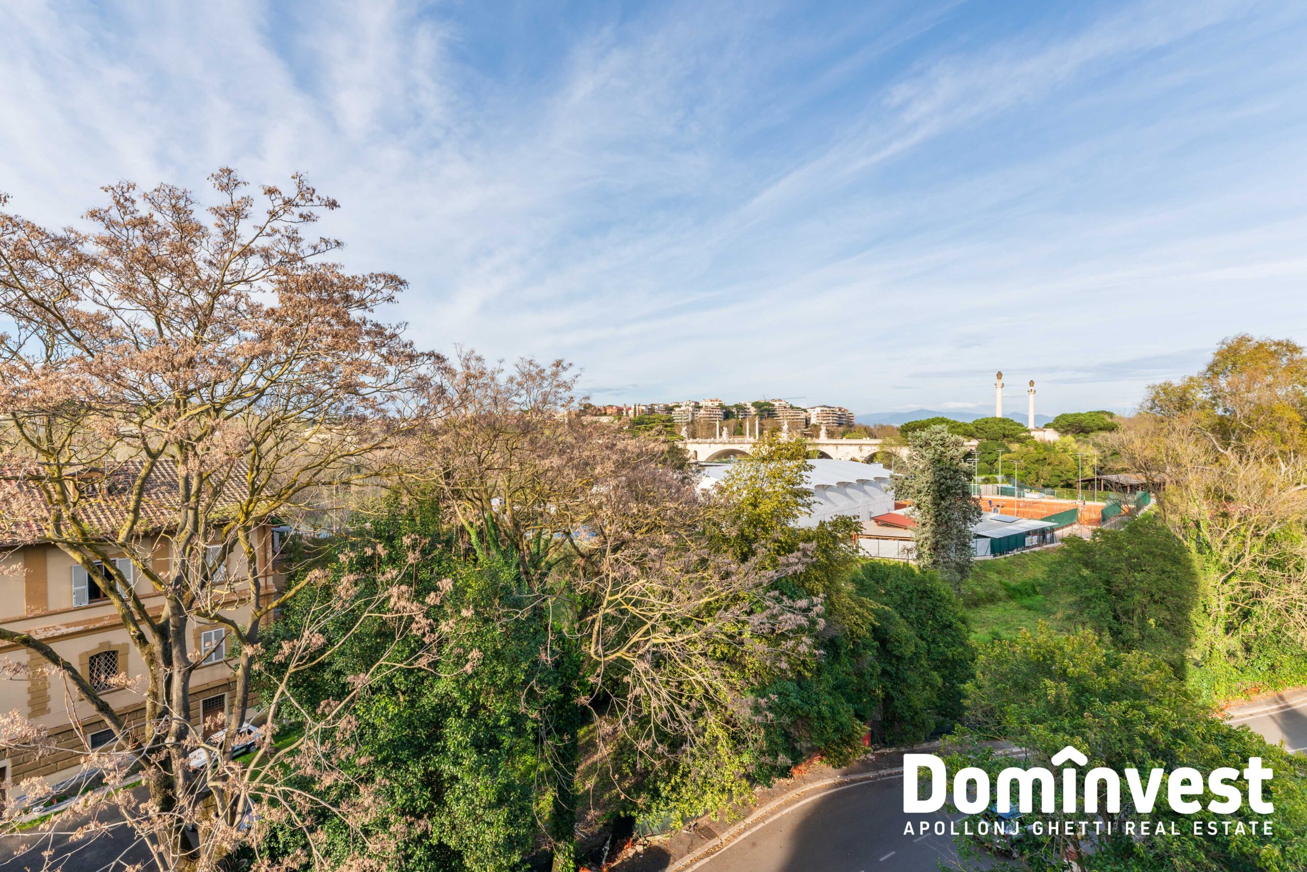L’Agenzia Immobiliare Dominvest propone in vendita un appartamento con vista mozzafiato sul Tevere a pochi passi da Ponte Milvio, nel quartiere Flaminio e più precisamente in Lungotevere Flaminio. L’appartamento è posto al quarto piano di uno stabile signorile e si compone di: ingresso, salone con camino, camera da pranzo con accesso al terrazzo, tre camere delle quali una con bagno en suite, bagno, cucina abitabile con balcone, cameretta e bagno di servizio. Completano la proprietà una cantina ed un posto auto nell’autorimessa condominiale. L’appartamento presenta numerose armadiature di falegnameria su misura, un ampio soppalco nella zona di servizio, aria condizionata, riscaldamento centralizzato, caldaia per l’acqua calda sanitari, pavimenti in parquet ed è dotato di un secondo ascensore che conduce al balcone di servizio. Ottimo stato. L’appartamento è unico nel suo genere poiché gode di una vista che spazia dalla collina verde di Monte Mario al Lungotevere con il romantico Ponte Milvio con la sua torretta e la chiesa, le suggestive lanterne di Corso Francia fino ad arrivare al Monte Soratte. *LE PRESENTI INFORMAZIONI E PLANIMETRIE SONO MERAMENTE INDICATIVE E NON COSTITUISCONO ELEMENTI CONTRATTUALI.