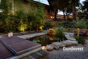 A disposizione dei residenti della villa si trovano un curato giardino condominiale e un suggestivo laghetto ornamentale con carpe Koi, che contribuiscono a creare un’atmosfera riservata e di grande charme. È inoltre possibile parcheggiare all’interno della proprietà.
