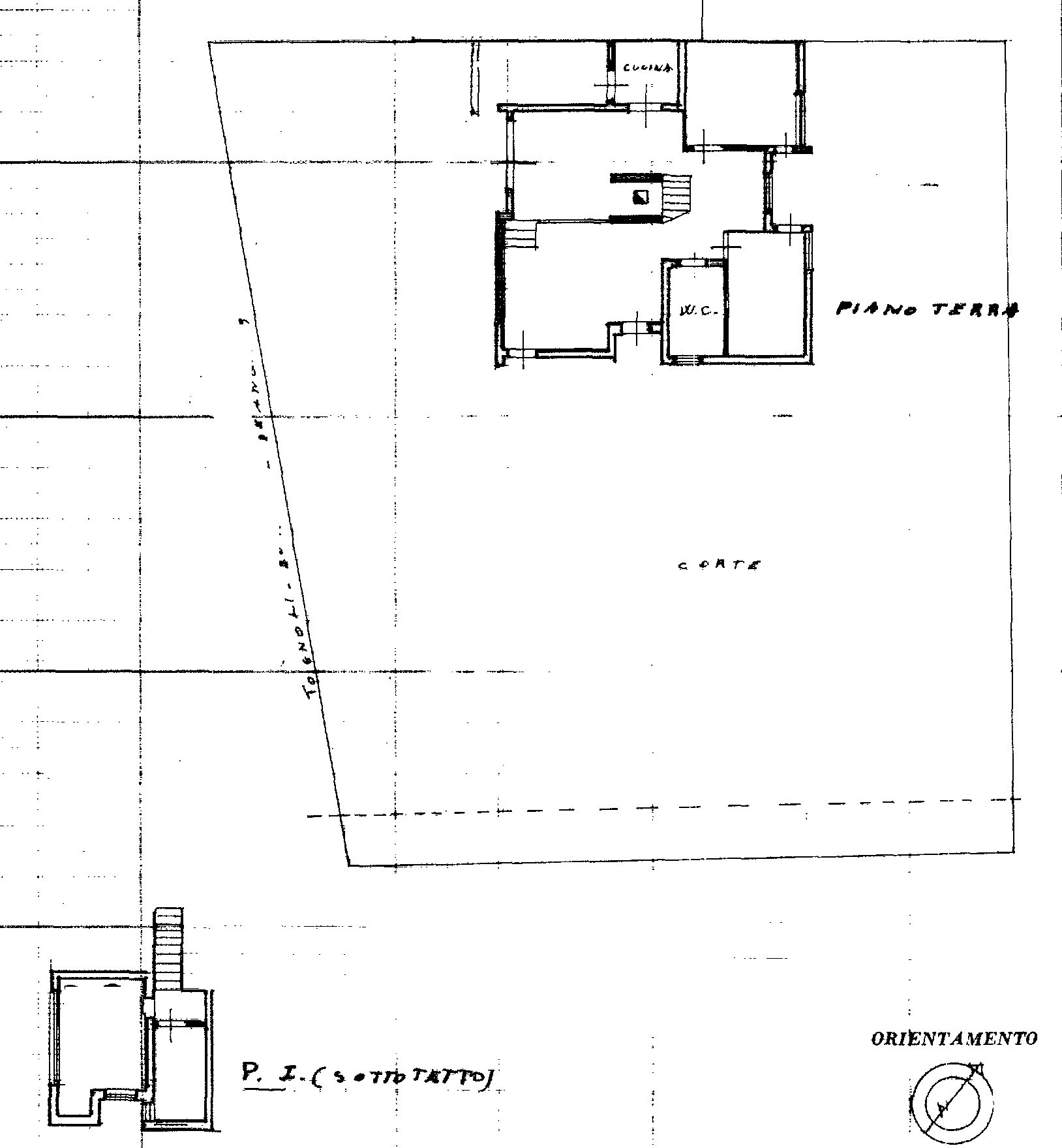 Piano terra: ingresso, ampio salone, sala da pranzo con camino, cucina con loggia, tre camere da letto e due bagni.