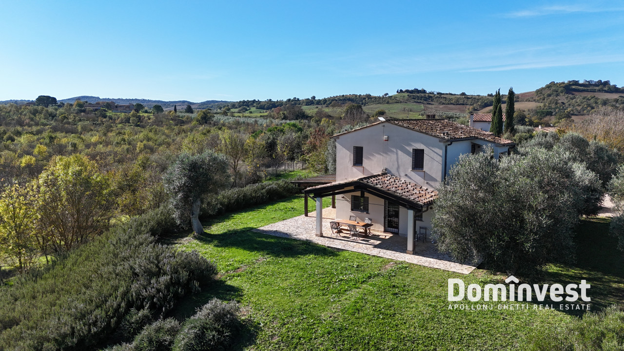 L’Agenzia Immobiliare Dominvest Roma Capalbio propone in vendita una villa di recente costruzione immersa nella quiete della campagna, circondata da 3 ettari di terreno privato con bosco e una splendida vista panoramica sulle colline toscane, a pochi minuti dal mare e dai borghi più affascinanti della Maremma.